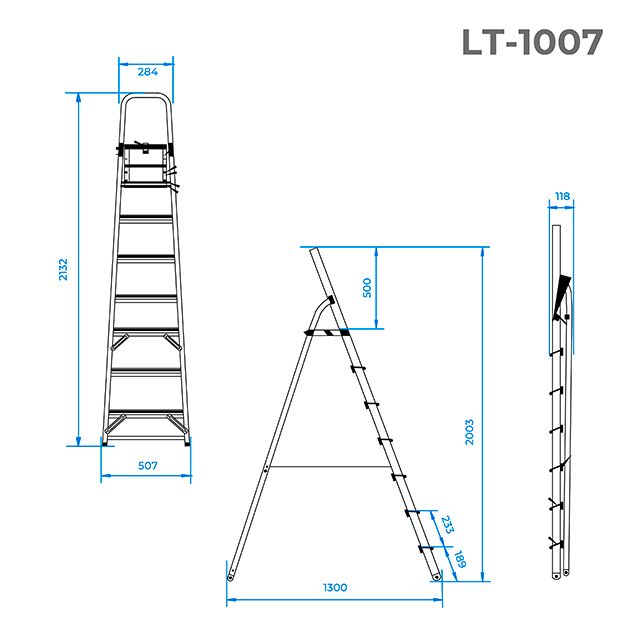Драбина легко розкладається у робоче положення і складається, товщина у складеному вигляді всього 118 мм, не займає багато місця для зберігання. Конструкцію можна носити однією рукою, її легко переносити та транспортувати.
