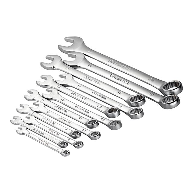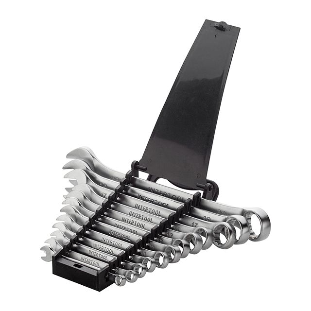 До набору INTERTOOL HT-1203 увійшли ріжково-накидні ключі, розмірами: 6, 7, 8, 9, 10, 11, 12, 13, 14, 17, 19, 22 мм. Це дозволяє обрати необхідний розмір під будь-які завдання для монтажу та демонтажу різьбових з’єднань гайок та болтів.