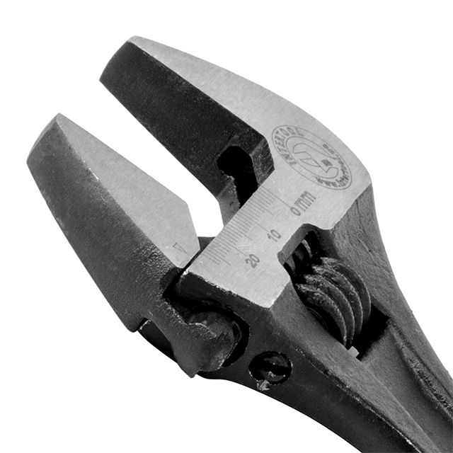 Розвідний механізм міцний та не дає люфт у роботі завдяки конструкційним особливостям ключа. Точно відкалібрувати необхідний розмір для захоплення кріплення дозволяє нанесена міліметрова шкала, що не стирається з часом. Довга ручка дозволить зручно маневрувати розвідним ключем та докладати ще більше зусиль.
