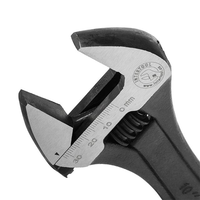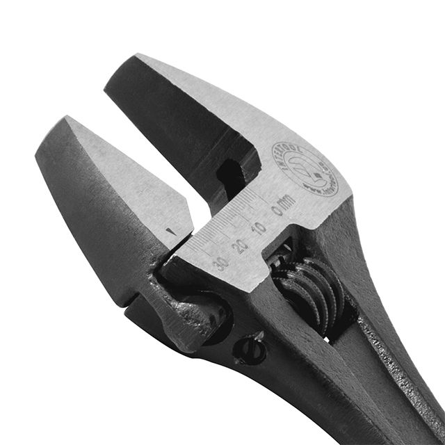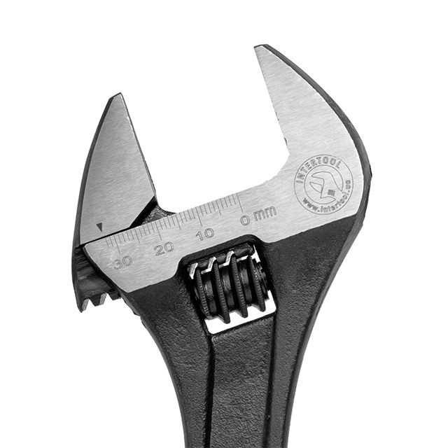 Розвідний механізм міцний та не дає люфт у роботі завдяки конструкційним особливостям ключа. Точно відкалібрувати необхідний розмір для захоплення кріплення дозволяє нанесена міліметрова шкала, що не стирається з часом. Довга ручка дозволить зручно маневрувати розвідним ключем та застосовувати ще більше зусиль.