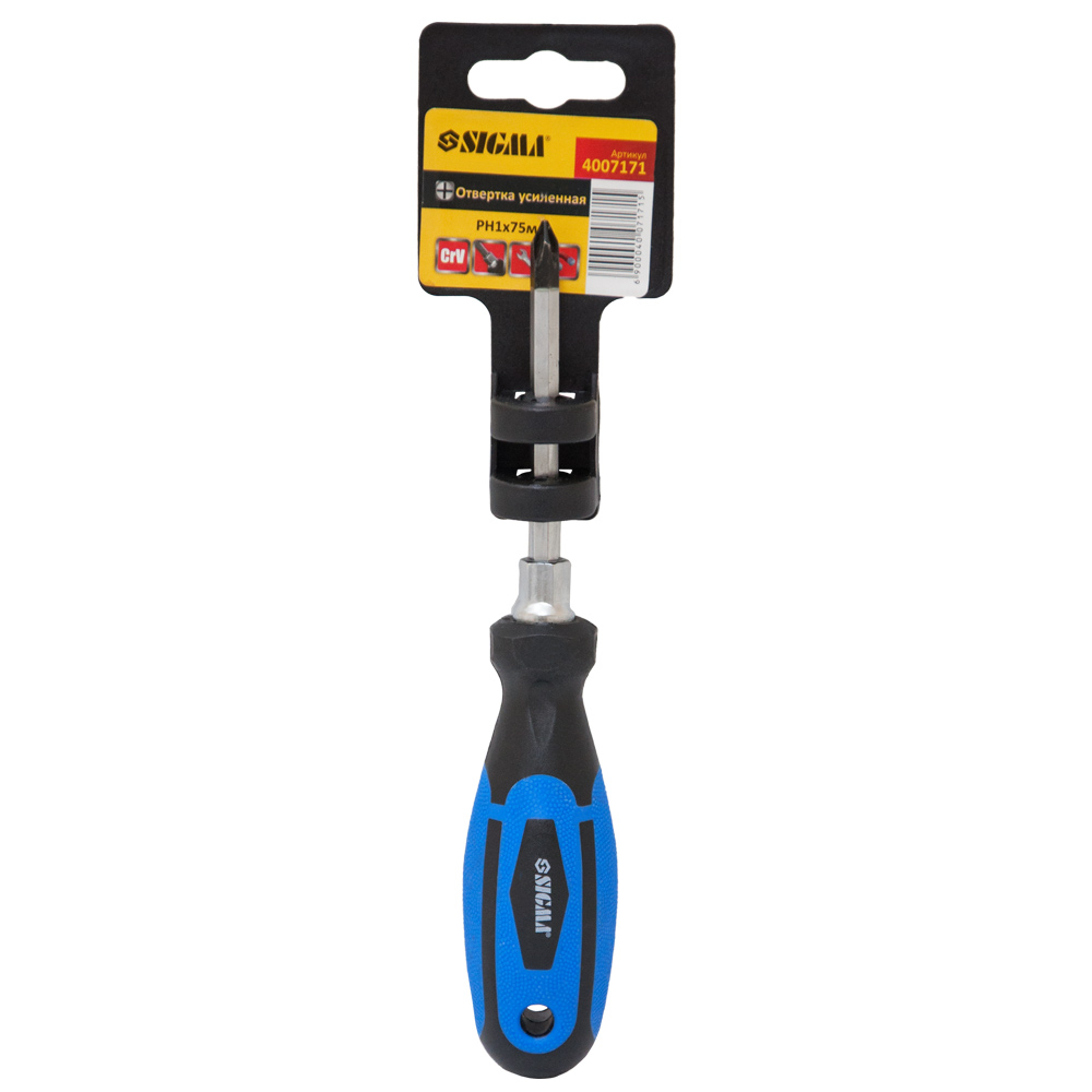 Технічні дані Тип посилені Матеріал CrV Тип викрутки PH1, хрестова Тип накінечника Магнітний Марка сталі CrV Особливості Двокомпонентна ручка, магнітний накінечник