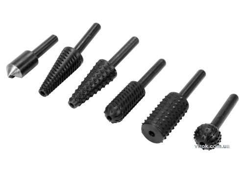 ГоловнаІнструменталкафрези та набори фрезНабір фрез 6шт різної форми по металу та дереву для дриля з шпінделем Ф=6мм YATO YT-61712