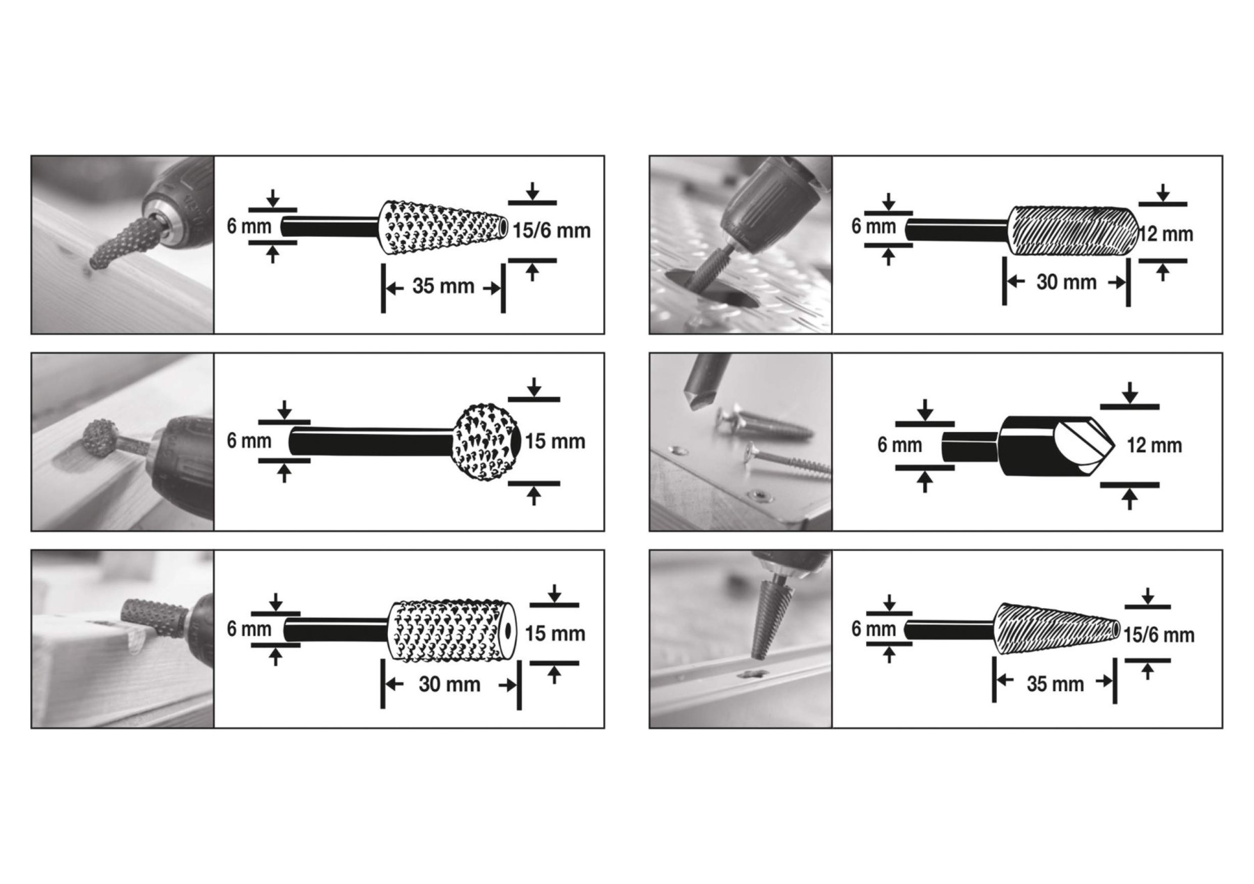 Набір із 6 фрез YATO YT-61712 призначений для обробки сталі та алюмінію, а також дерева. Виготовлені з високоякісної сталі HSS, що гарантує відмінну якість та швидкість різання матеріалу. Використовуэться з дрилями (наприклад, YT-82034, YT-82036, YT-82037, YT-82044). Набір містить 2 фрези по металу, зенковку 12 мм, 3 фрези по дереву.