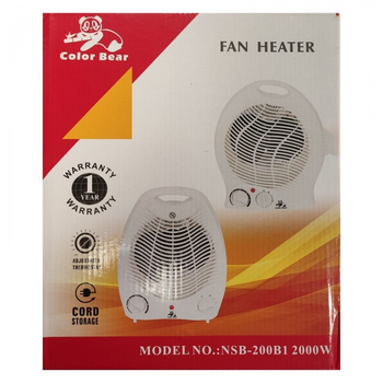 Є захист під час перегрівання. Принцип роботи полягає в безперервному пропусканні великого об’єму повітря через нагрівальний елемент за допомогою вбудованого вентилятора. Потужність становить 1000/2000 Вт.