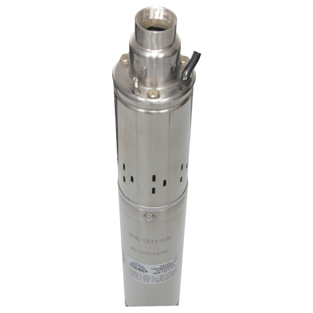 Насос свердловинний шнековий Vitals Aqua 3DS 1231-0.6r відноситься до класу занурювальних моноблочних роторних насосів із вертикальним розташуванням вала. Двигун розташовується в нижній частині насоса, а у верхньому фланці – різьбовий вихідний патрубок для під’єднання трубопроводу та зворотнього клапана. Шнековий насос не надто чутливий до забруднення води, ніж інші свердловинні насоси, може працювати як у вертикальному, так і в похилому положенні. Підвішування насоса здійснюється за допомогою гнучкого троса за рим-болти.