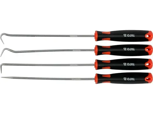 Набір гачків з ручкою YATO YT-08429 має загартовані і хромовані наконечники зі сталі 40Cr. Рукоятка виготовлена із двокомпонентного матеріалу, що полегшує надійний хват. Набір рекомендований для роботи в автомобільній промисловості, механіці, сервісі та будівництві.