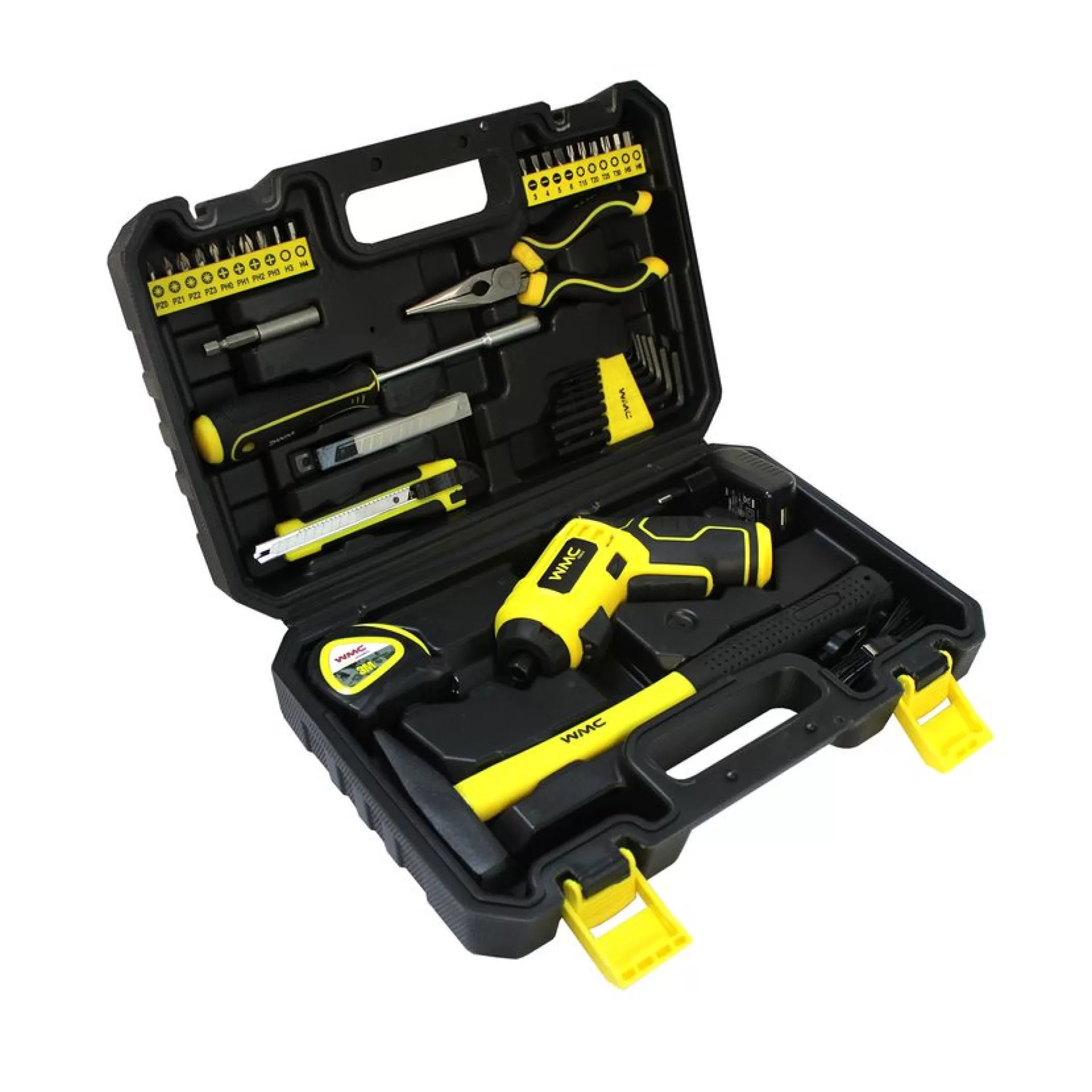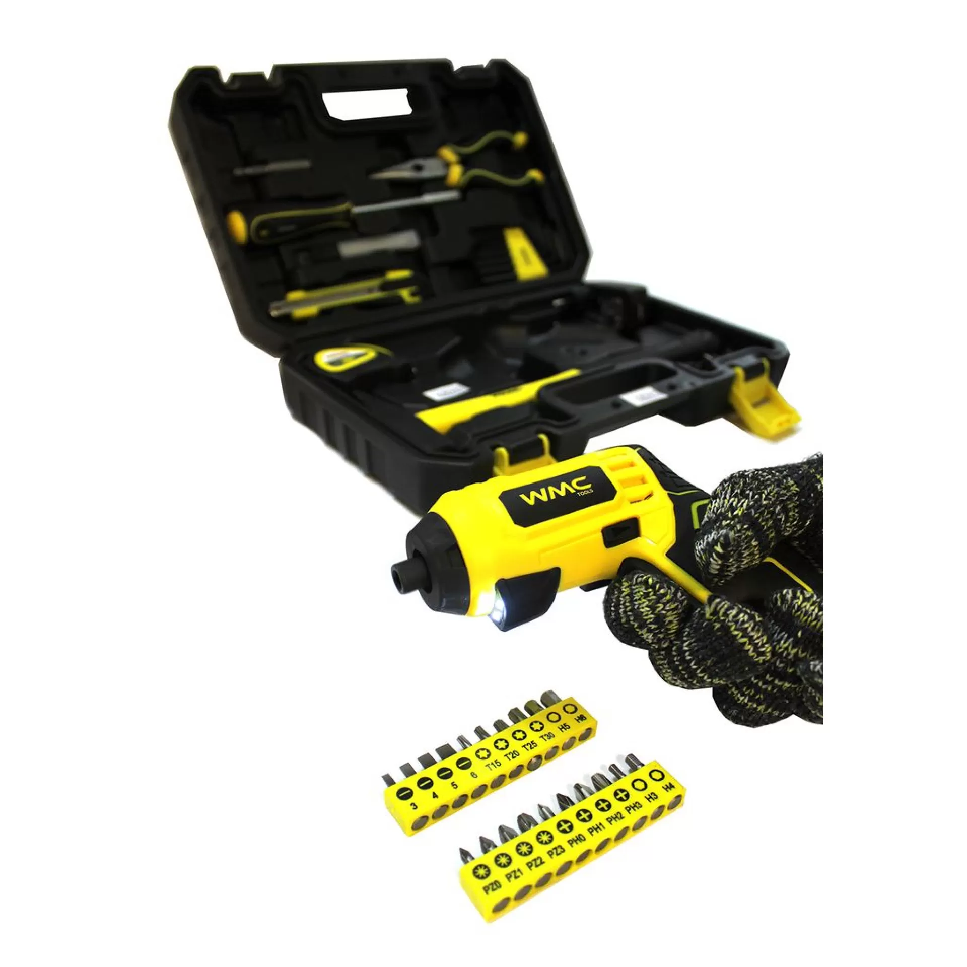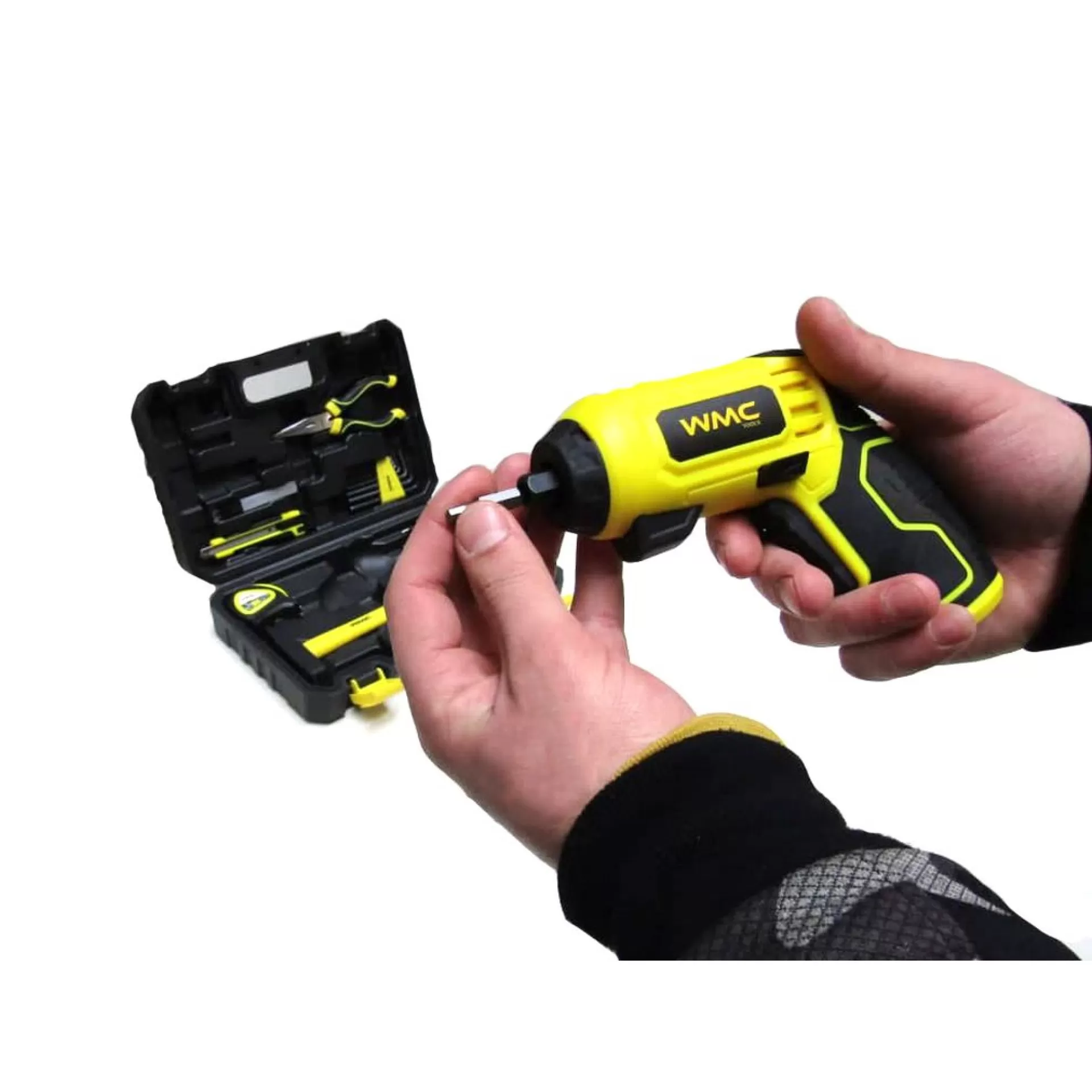 Акумуляторна викрутка WMC TOOLS 1047 з акумулятором Li-Ion на 3,6 В та 1,3 Ач, в комплекті з аксесуарами, використовується для роботи з шурупами, саморізами і гвинтами. Набір інструментів включає 47 різноманітних предметів, які задовольнять потреби професійних майстрів і любителів. Цей комплект пропонує широкий спектр інструментів та аксесуарів, необхідних для різноманітних ремонтних та будівельних робіт. Кожен предмет виготовлений із якісних матеріалів, забезпечуючи міцність, надійність та тривалий термін служби.