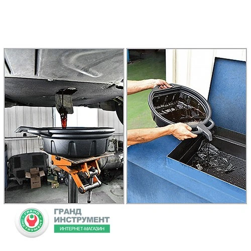 - Великий об’єм: 18 літрів дозволяють зливати масло з більшості двигунів без необхідності частого опорожнення піддона.