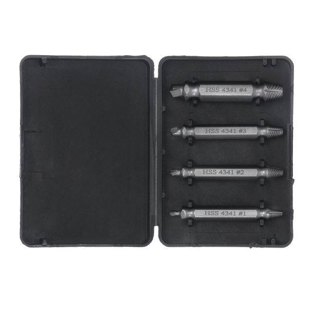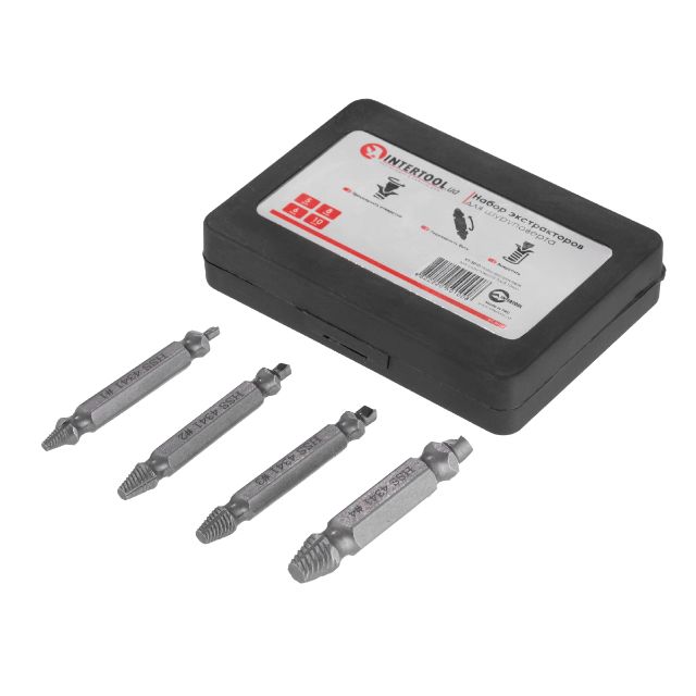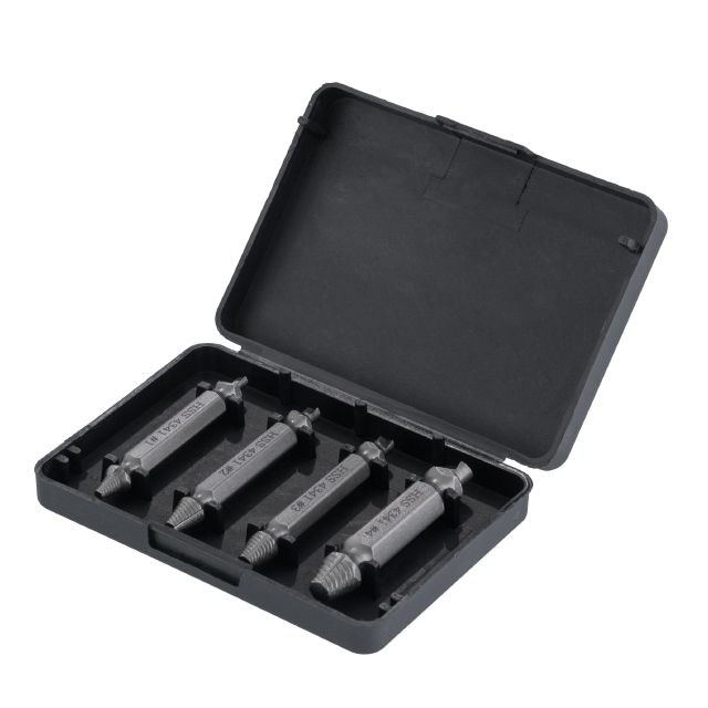 Набір містить чотири найпопулярніші розміри екстракторів: 5, 6, 8, 10 мм. Розмір підбирається, виходячи з параметру кріплення. За діаметром він не повинен збігатися або бути більшим за діаметр кріплення, яке витягується.