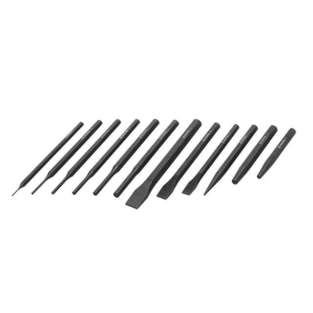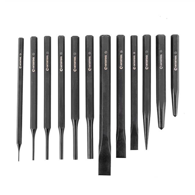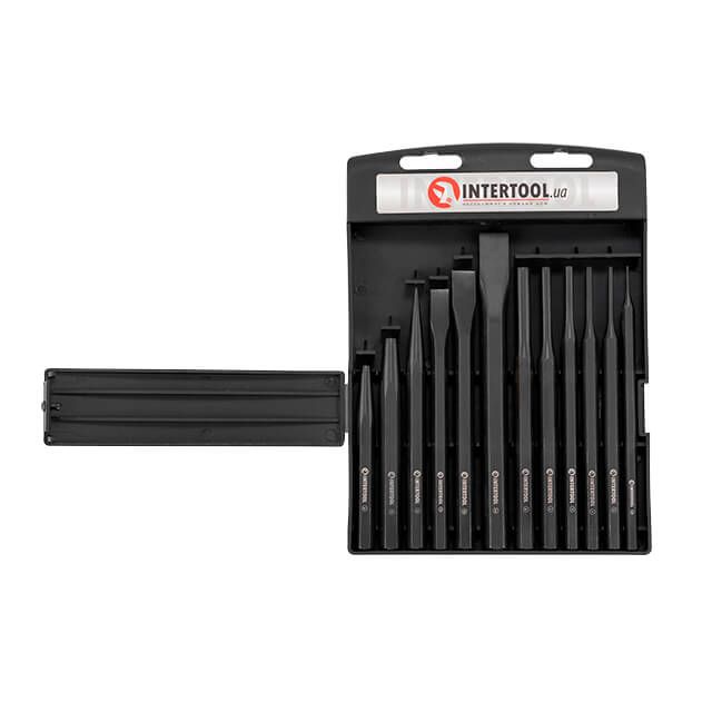 Набір зубил, кернерів та виколоток HT-0289 складається з 12 предметів, яким знайдеться застосування на СТО, виробництвах, заводах, спеціалізованих майстернях, і навіть у гаражі у автолюбителів. Всі інструменти підходять для роботи з металом, каменем та іншими твердими поверхнями, тому активно використовуються як професійними майстрами, так і в побуті. |