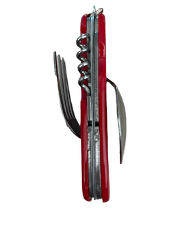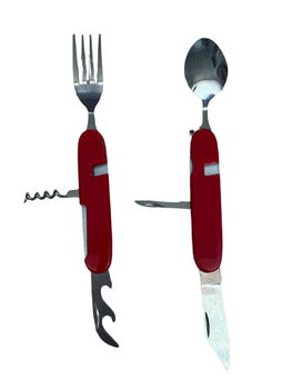 Зручний складний набір: вилка, ложка, ніж, відкривачка для рибалок/мисливців, любителів активного відпочинку та походів. Довжина брелока у складеному вигляді 11 см. Вага 130 грам.