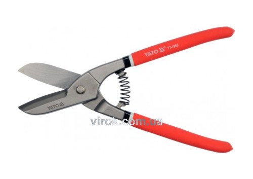 Ковані ножиці типу «англійські» зі сталі з маркуванням S55. Леза індукційно загартовані до твердості приблизно 55-60 HRC, ефективно ріжуть сталевий лист товщиною до 1 мм / холоднокатана сталь /. Оснащений легкознімною пружиною, яка відкриває ручки та леза. Це полегшує розрізання листового металу. Для ефективного різання листової сталі товщиною до 1 мм.