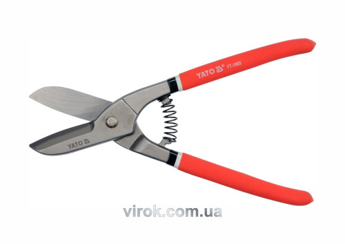 Ковані ножиці типу «англійські» зі сталі з маркуванням S55.Леза індукційно загартовані до твердості приблизно 55-60 HRC, ефективно ріжуть сталевий лист товщиною до 1,2 мм / холоднокатана сталь /. Оснащений легкознімною пружиною, яка відкриває ручки та Леза. Це полегшує розрізання листового металу. Ручки покриті м’якими накладками. Загальна довжина 250 мм.