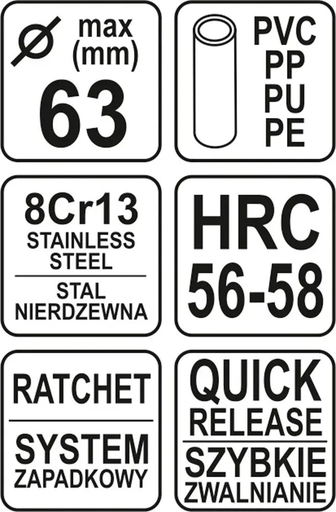 ГоловнаІнструменталкатруборізи та трубогибиТруборіз ножиці для ПВХ труб Ф-63мм корпус нержавійка YATO YT-22312