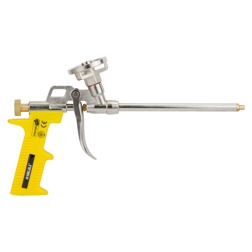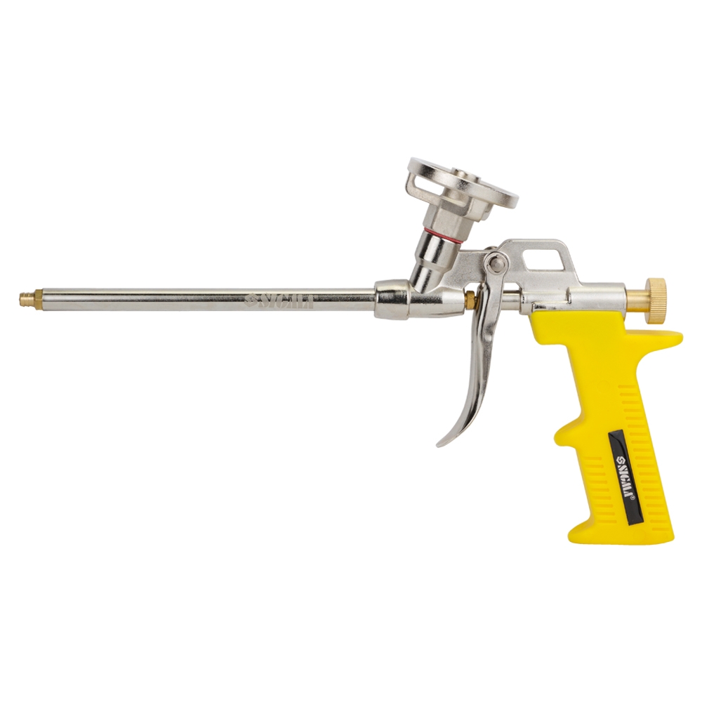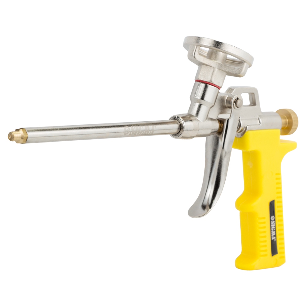 Пістолет для поліуретанової піни SIGMA (2722011) Призначений для робіт з монтажною піною. Використовується при монтажі вікон, дверей та інших будівельних конструкцій для заповнення пустот і надання герметичності. Конструкція пістолета має адаптер для підключення балона з піною, який розташований у верхній частині пістолета. Для запобігання витікання піни, інструмент оснащений головкою з вбудованим механізмом кульки, разом з голкою. Голка виконана з нержавіючої сталі, високої якості, а покриття забезпечує захист від корозії та тривалий термін експлуатації.