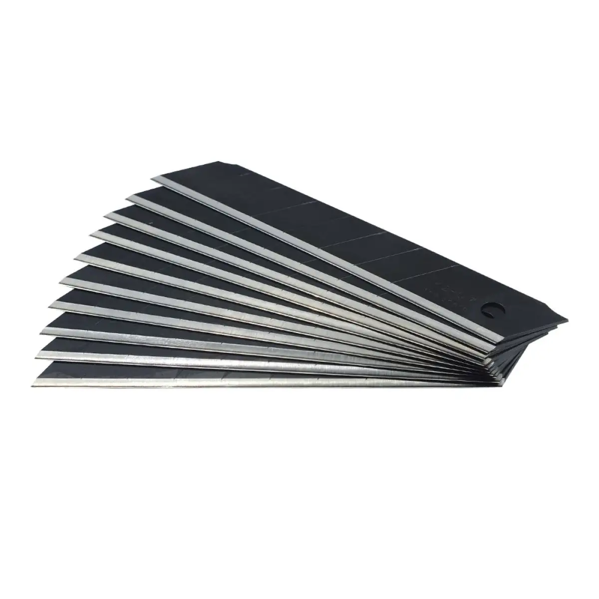 Леза сегментні для ножа 18 мм 10 шт. Haisser – призначений для оперативної заміни основного леза ножа, що вийшов з ладу. Підійде для розрізання щільного паперу, плівки, картону, лінолеуму і т.д. Ріжуча кромка виготовлена з міцної високоякісної сталі Sk2 з тригранним ультра тонким заточуванням. На лезо нанесені насічки, що дозволяють при необхідності видалити затуплену ділянку. Товщина леза 0,7 мм.