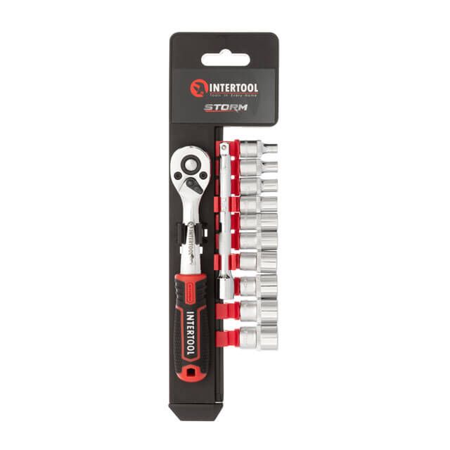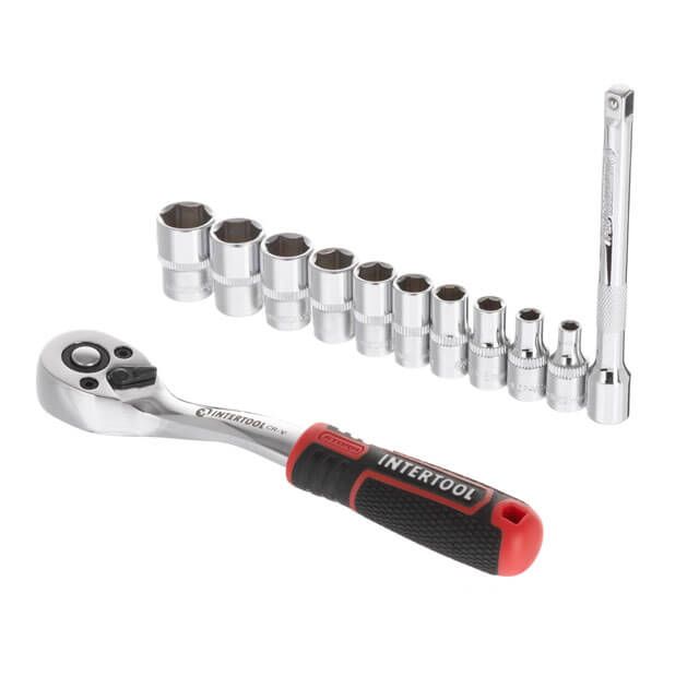 До набору увійшли найпопулярніші розміри торцевих головок, тріскачка та подовжувач для роботи у важкодоступних місцях.