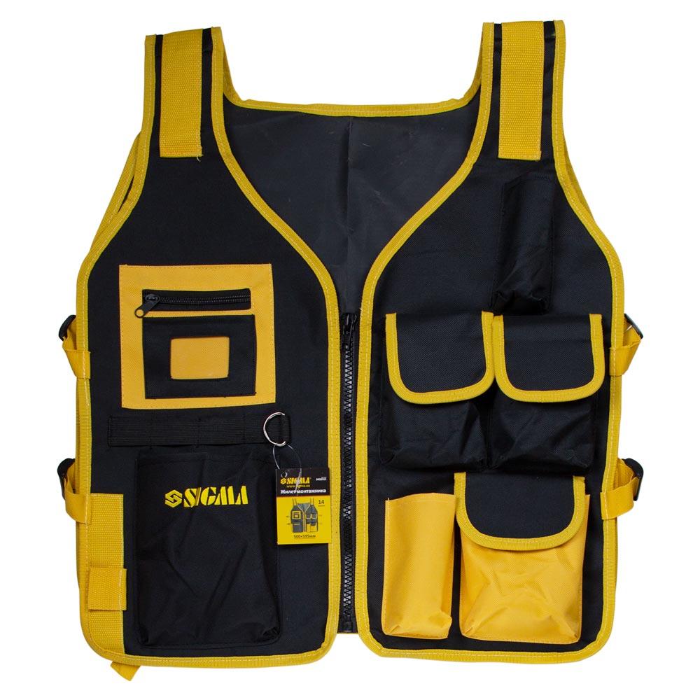 Жилет монтажника 7 кишень 500×595мм SIGMA (9450311) використовується для зручного носіння та швидкого доступу до найбільш часто використовуваних інструментів.