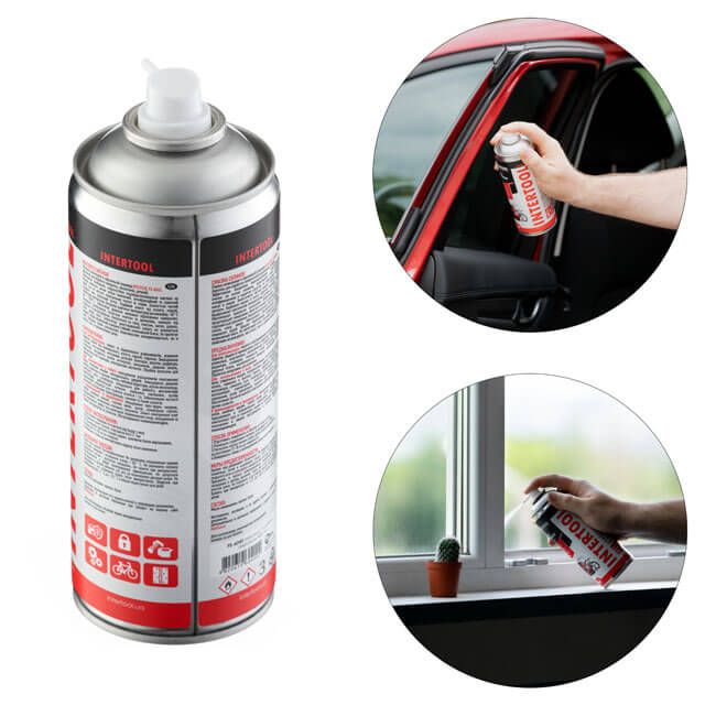 Мастило-спрей “Силікон” – це універсальний засіб для надійного та довговічного захисту від зносу деталей, що рухаються та труться. Мастило INTERTOOL FS-6040 не змивається водою та створюють надійну плівку на поверхні. Завдяки своїм унікальним властивостям використовується як у домашніх, так і в професійній цілях.