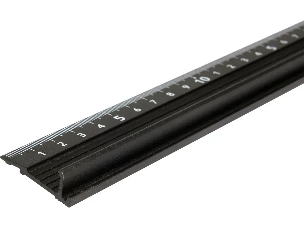 Алюмінієва лінійка YATO YT-70725 з профілем у верхній частині, що служить надійною ручкою для утримання лінійки під час різання. Нижня поверхня обклеєна смугою пінопласту, що захищає матеріал, що вимірювається. Для зручності використання лінійка має отвір для підвішування.
