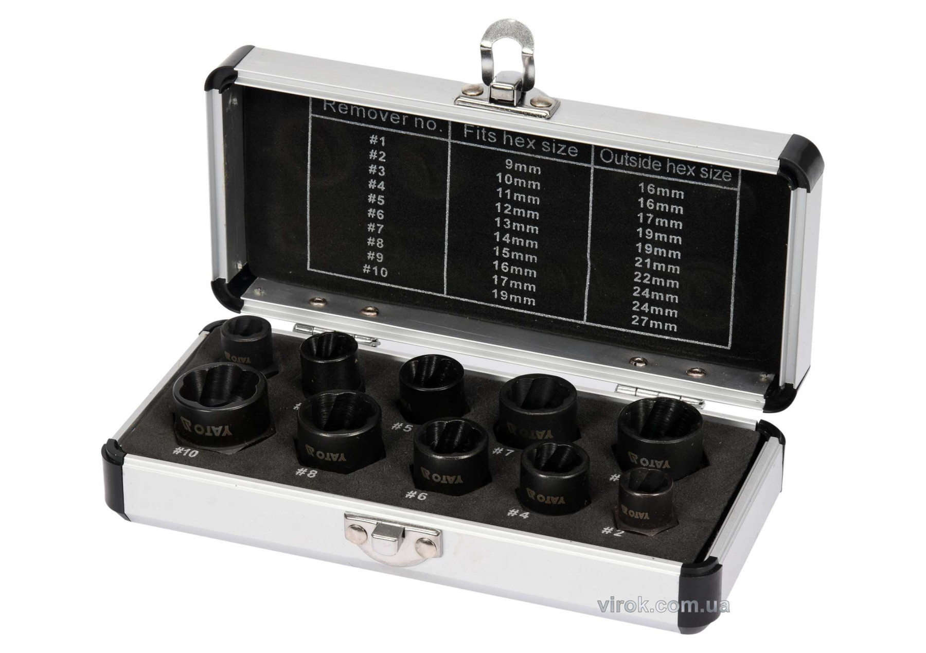 ГоловнаІнструменталканабори екстракторівНабір екстракторів для зламаних болтів,з квадратом 3/8 10 од.YATO-06031