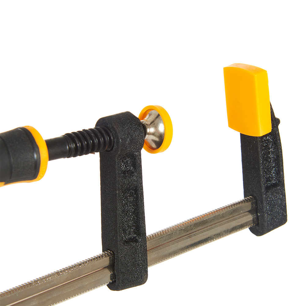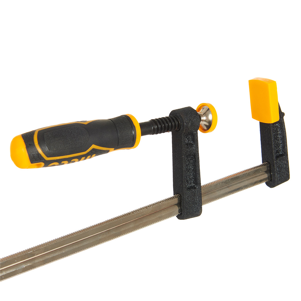 Струбцина столярна тип-F 50х250 мм INGCO INDUSTRIAL призначена для стиснення між собою або закріплення на робочому столі деталі великих розмірів із пластику, деревини або металу.