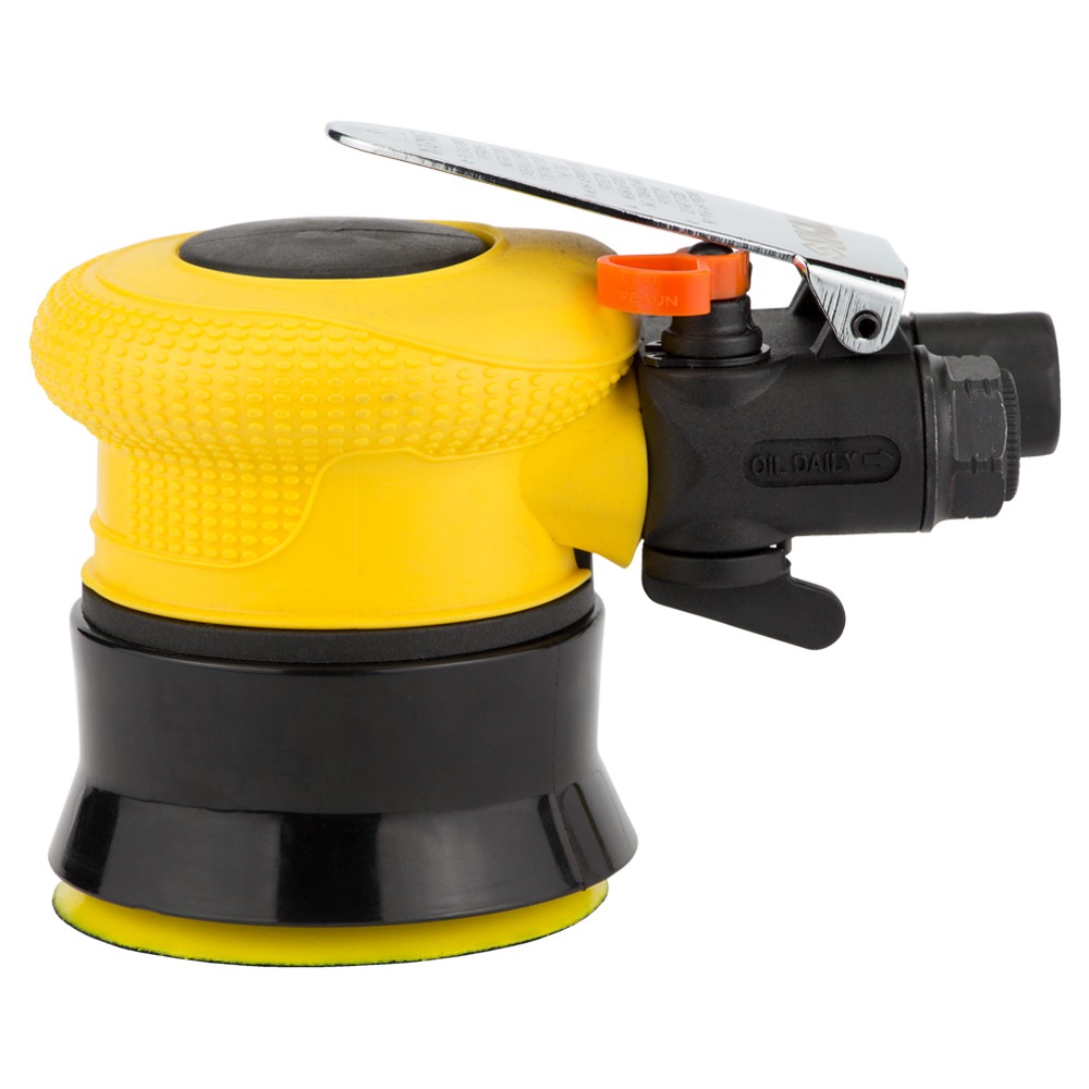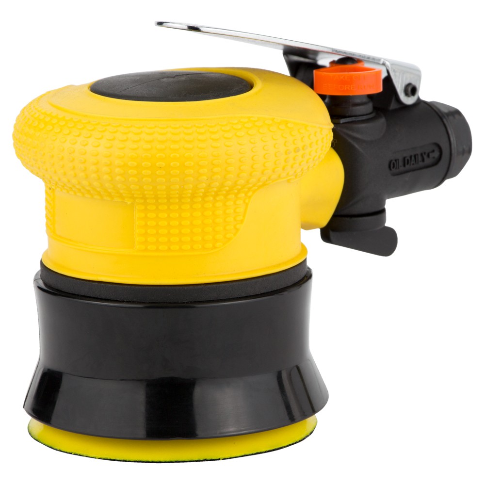 Шліфмашинка орбітальна пневматична 75мм SIGMA (6731001) призначена для полірування і шліфування різноманітних поверхонь: металевих, пластмасових, дерев’яних. Дані шлифмашинки розрізняються діаметром шліфувального диска від 75 до 150мм. Змінити оснастку (шліфувальний круг) легко і швидко, завдяки кріпленню “липучка” на диску. Принцип роботи на стислому повітрі передбачає низьку пожежо- та вибухонебезпечність робочого процесу, а також дозволяє збільшувати тривалість роботи без перегріву. Характеристики: Корпус з високоміцного технополімера Регулятор швидкості оборотів Ергономічна нейлонова рукоятка Пружний матеріал підошви “EVA” Підошва із застібкою “липучка” 75мм