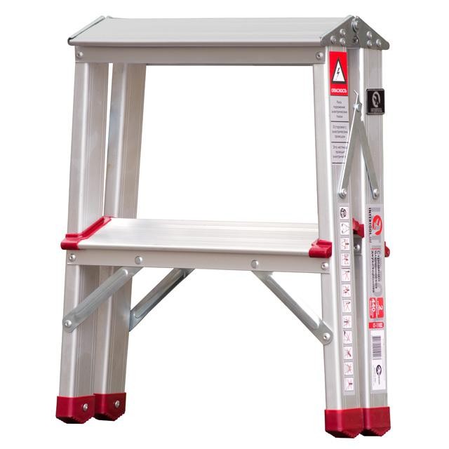 ГоловнаІнструменталкауніверсальні драбиниДрабина розкладна алюміній двостороння 2 сходинки висота 440 мм ІНТЕРТУЛ LT-1102