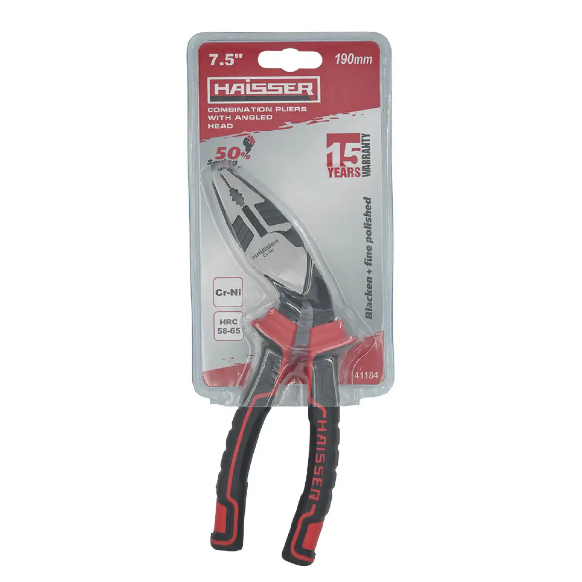 Плоскогубці 190 мм вигнуті Cr-Ni Blacken Polished 50% SAVE POWER 41184 Haisser – якісна модель із загартованими робочими поверхнями. Виконані з високоякісної хромонікелевої сталі. Ручки виготовлені із пластику з гумовими вставками, інструмент зручно лежить у руці.