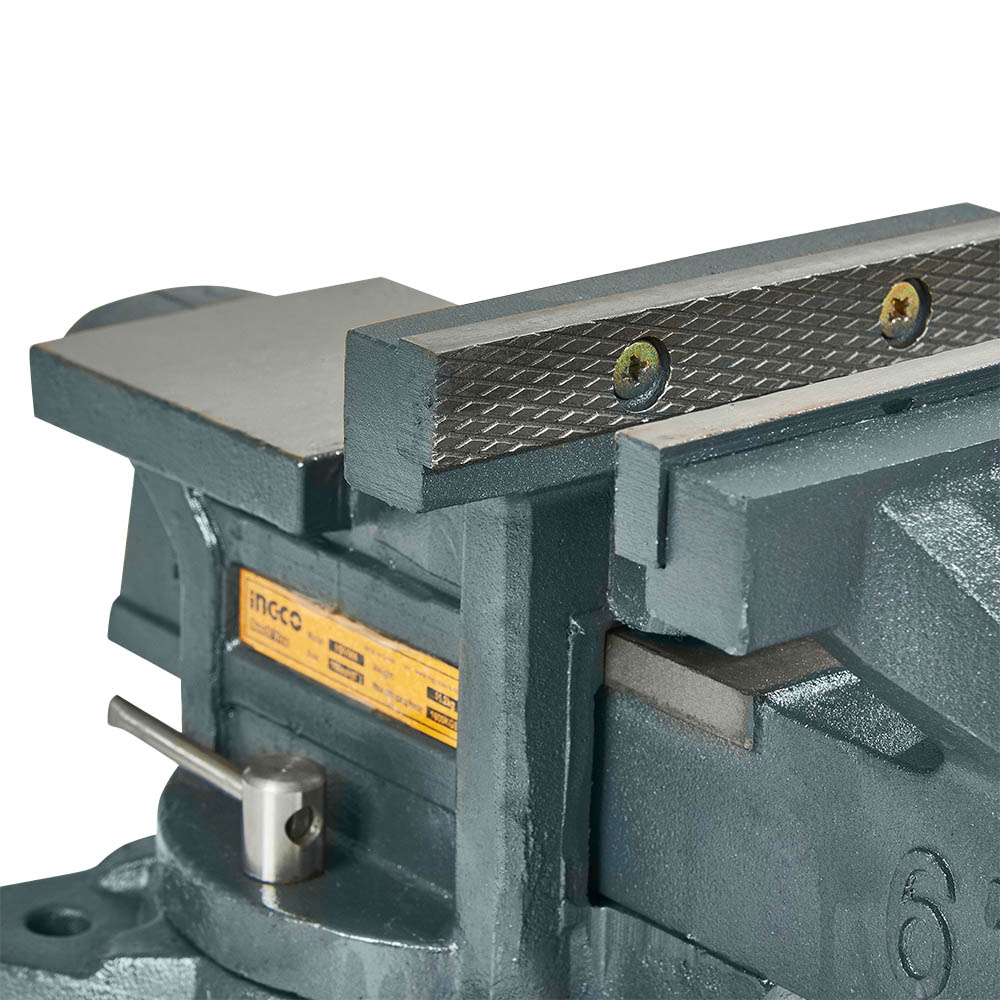 Лещата поворотні з ковадлом INGCO HBV086 призначені для надійної фіксації заготовок. Сферу застосування істотно розширює невелике ковадло для малих слюсарних робіт, яким оснащене пристосування. Надійному кріпленню до верстата або робочого столу сприяють посадкові пази в основі лещат. Поворотна основа лещат забезпечує доступ для обробки з різних боків. Зусилля затиску 1600 кгс. Діагональ поворотної основи 150 мм. Вага 11,2 кг.