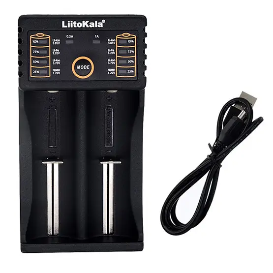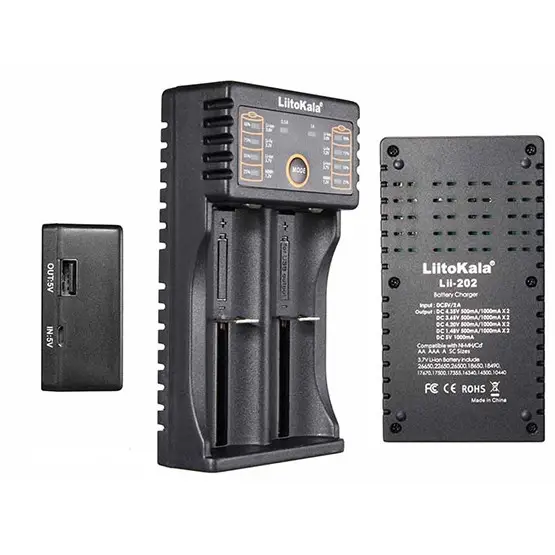 LiitoKala Lii-202 — універсальний 2-канальний зарядний пристрій із функцією Power Bank, який сумісний практично з усіма типами циліндричних акумуляторів різного хімічного складу — NiCd, NiMH, Li-Ion, LiFePO4 і практично всіх типорозмірів акумуляторів АА, ААА, С (R14), A, SС, 14500, 16340, 18350, 18650, 21700, 20700, 26650 та інші.