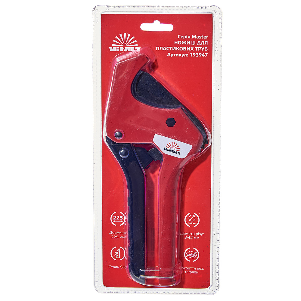 Опис ножиць 225 мм для різання ПВХ-труб 3-42 мм Vitals