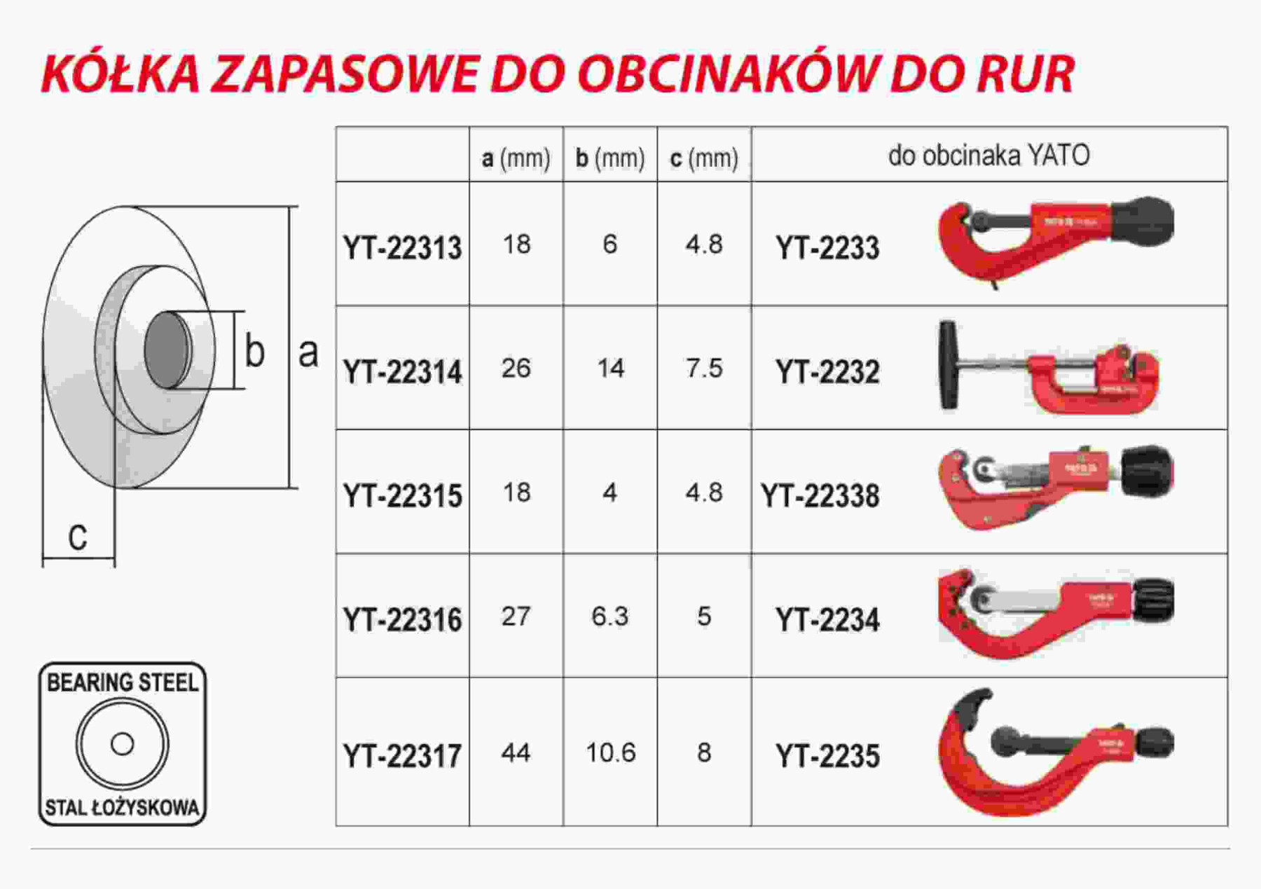 ГоловнаІнструменталкатруборізи та трубогибиРізці дискові YATO для труборізів YT-22313 Ф=18*6мм /h=4.8мм