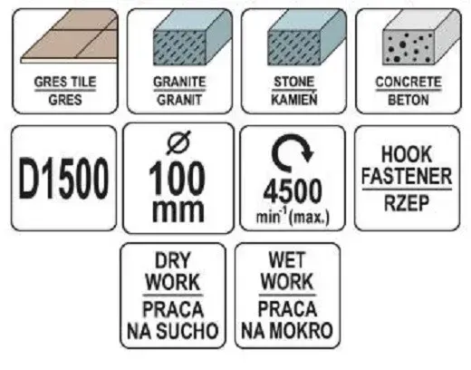 Алмазний диск YATO YT-48205 для роботи з керамогранітом, гранітом, конгломератом, бетоном. Призначений для шліфування, полірування поверхонь, згладжування обрізних кромок і зняття фасок.