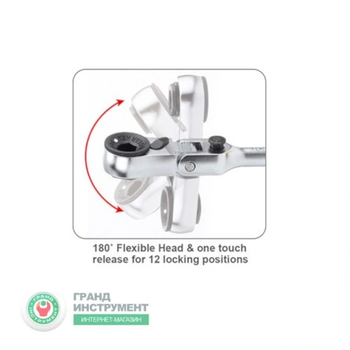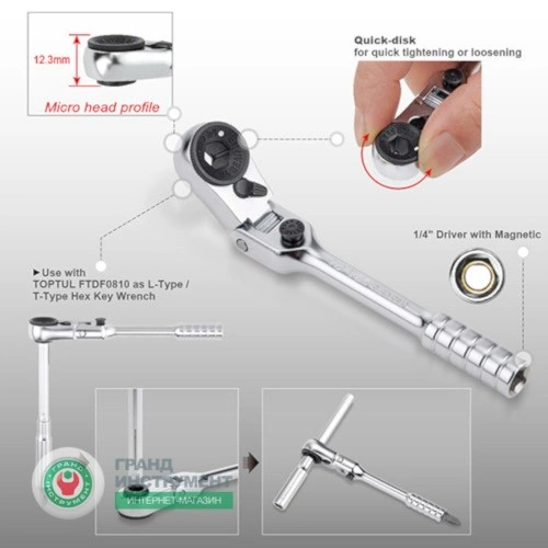 ГоловнаІнструменталкабітотримачТріскачка 1/4″ міні 60 зубців з шарніром (вик. з FTDF0810) TOPTUL CHEV0811