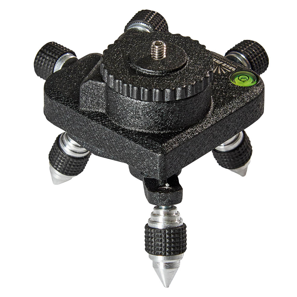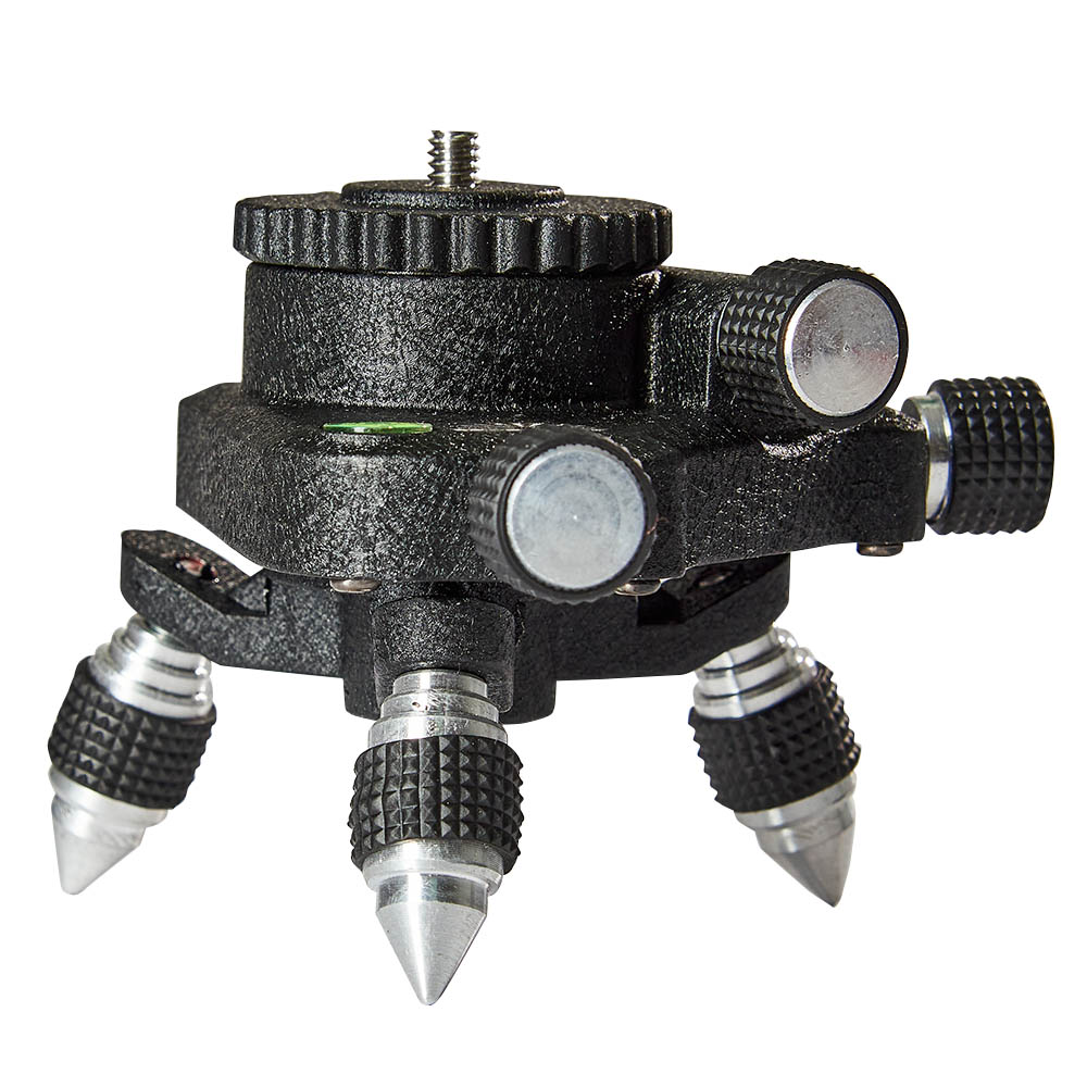 Мінітринога для точного виставлення стартової позиції лазерного рівня. Ніжки можна регулювати для компенсації нерівності поверхні. На корпусі є бульбашковий рівень, для точного налаштування. Лазерний рівень можна обертати на 360° з мікроліфтом, а також передбачена зміна положення за віссю X та Y. Кріплення для лазера 1/4″.