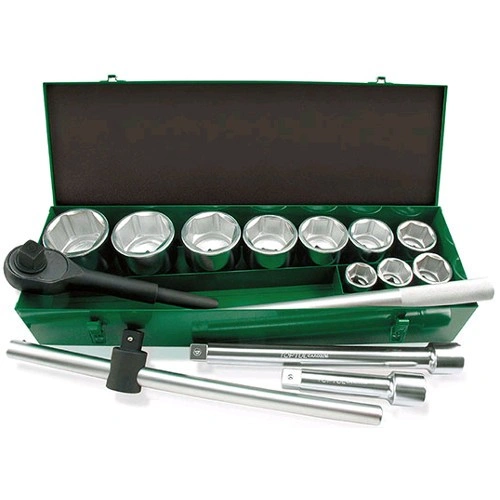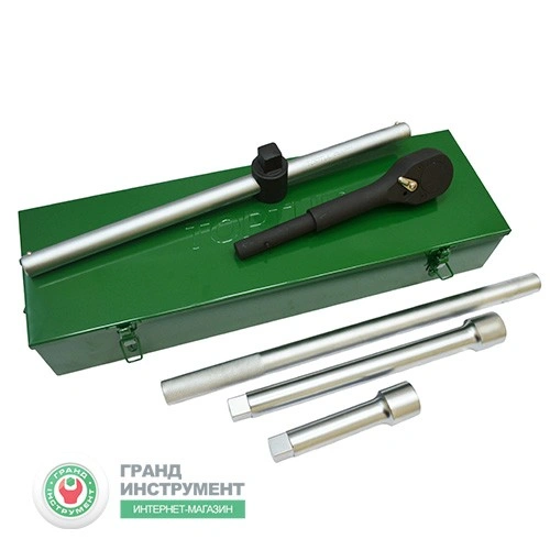 Набір містить: 10 торцевих 6-гранних головок від 36 до 80мм, 2 подовжувача на 200 і 400мм, вороток з плаваючою головкою 560мм і тріскачку на 24 зубця 820мм.
