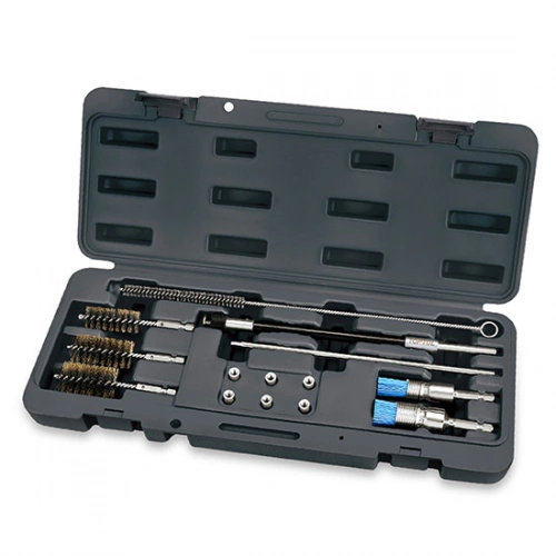 Набір від TOPTUL, модель JGAI1404, спеціально розроблений для ефективного очищення сідел форсунок дизельних двигунів перед встановленням нових форсунок. Він допомагає забезпечити точну посадку форсунок та запобігти витокам через неправильно посаджені форсунки.