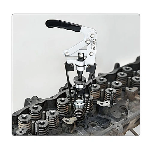 Призначений для швидкого зняття пружин клапанів і фіксаторів пружин без зняття головки блоку циліндрів. Конструкція кулачкового рівня для надійного замикання пружини клапана в інструменті. Регульована глибина та адаптер приводу подвійного розміру, підходить для більшості великих і малих пружин клапанів. Підходить для використання в широкому спектрі двигунів OHV, OHC і CVH.
