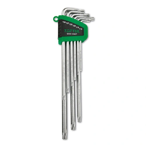 ГоловнаІнструменталка_новий TOPTULНабір Г-подібних ключів TORX T10-T50 9од. супердовгих з отвором TOPTUL GSN-09ET