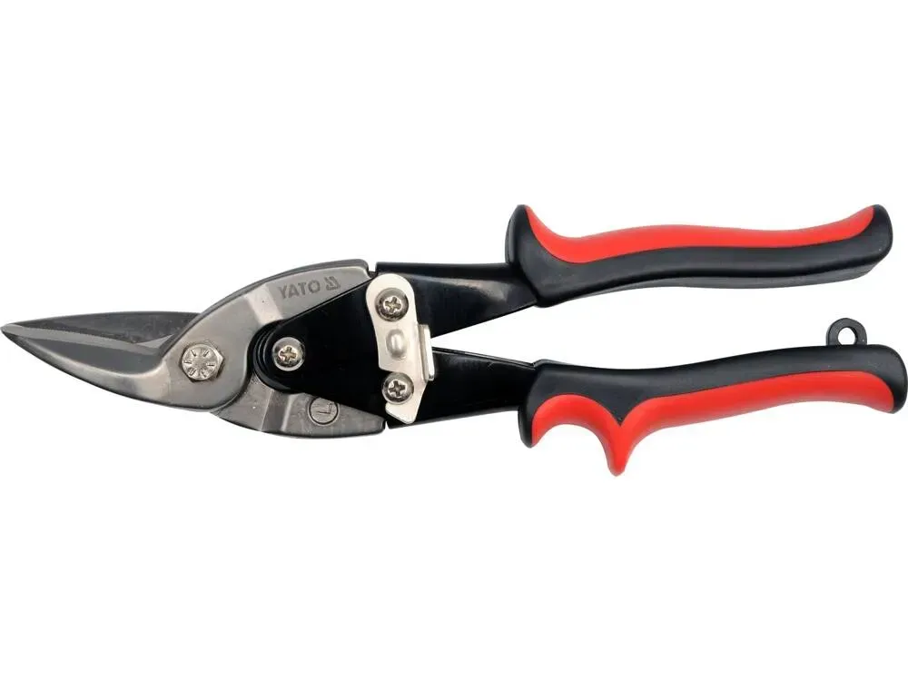 Ножиці для різання листового металу YATO YT-1960, ковані із хромомолібденової сталі. Індукційно загартований корпус до 46-52 HRC та ріжучі губки до 56-62 HRC. Це дозволяє вільно різати сталеві листи завтовшки до 1,5 мм. Ручки ножиць закриті пластиковими ковпачками.