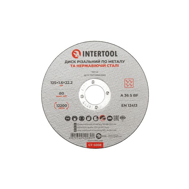 ГоловнаІнструменталкавідрізні диски по металуКоло відрізне по металу ІНТЕРТУЛ СТ-4008 125*1,6*22,2мм
