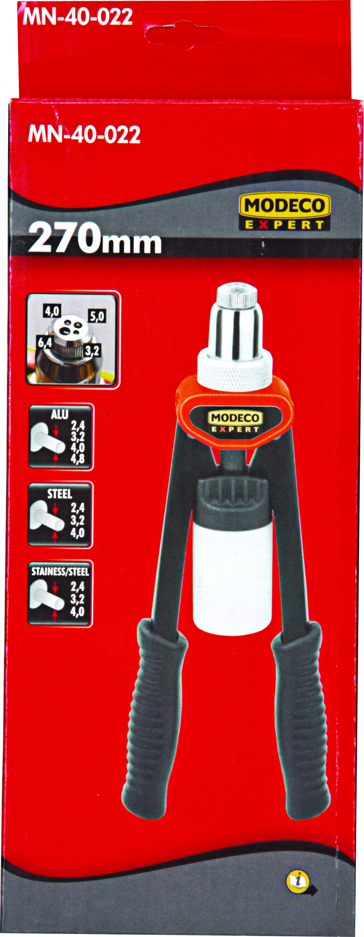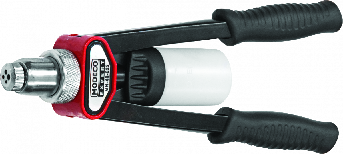 ГоловнаІнструменталкаручні заклепувальникиПістолет д/заклепок дворукий 270мм EXPERT Модеко MN-40-022