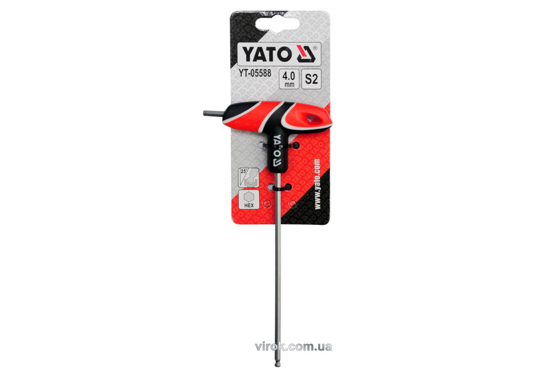 ГоловнаІнструменталкаключі шестигранніКлюч шестигранний тип Т М4 двусторонній кульковий 140мм YATO YT-05588