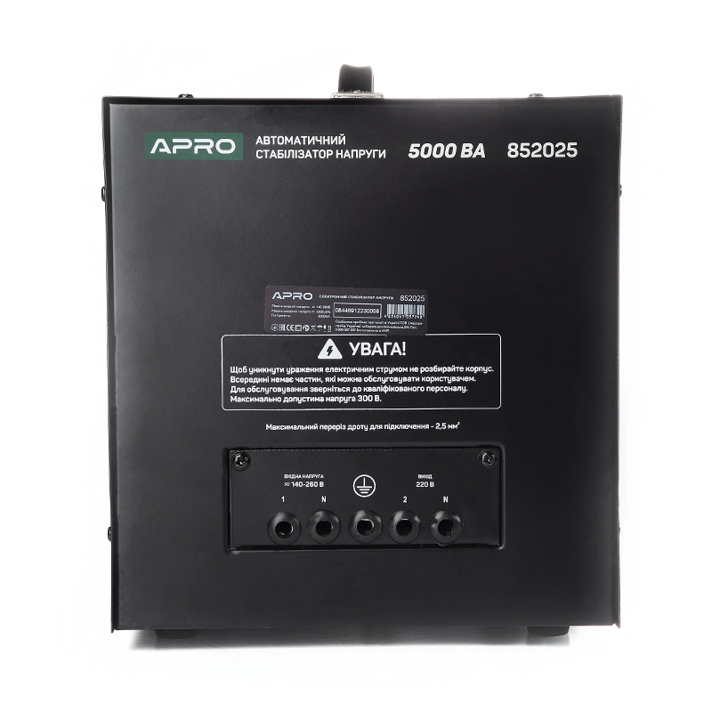 Комплектація Стабілізатор напруги релейний AVR-5000, 4000Вт APRO