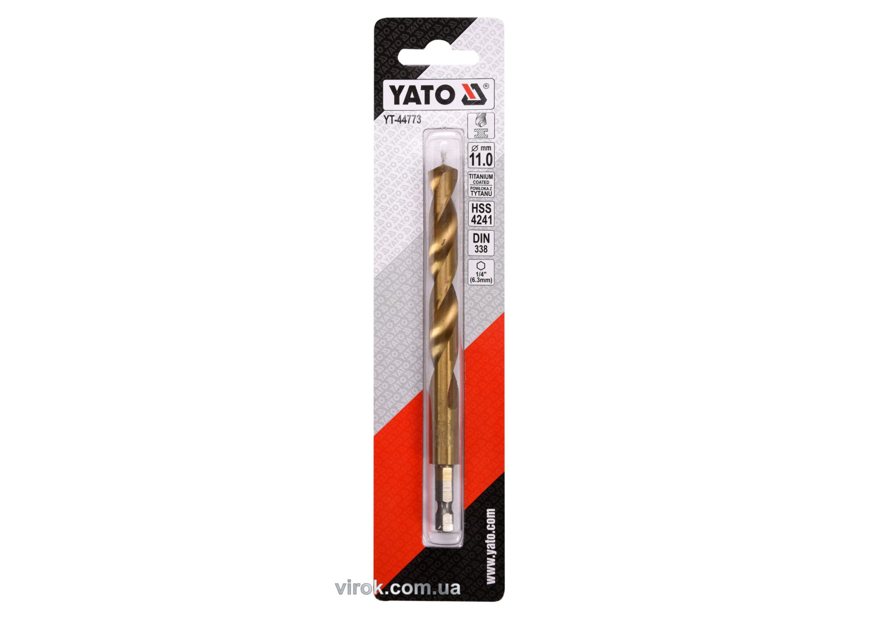 ГоловнаІнструменталкасвердла по металуСвердло по металу титанове Ф=11мм І=142мм 6гран HEX14″ YATO YT-44773
