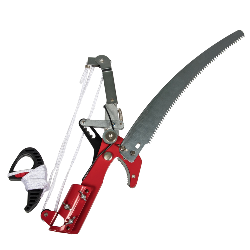 Для зручності інструмент оснащений нейлоновим 1,7 м шнуром з пластиковим захопленням. Також гілкоріз додатково обладнаний знімною ножівкою для обрізки більш масивних і сухих гілок.