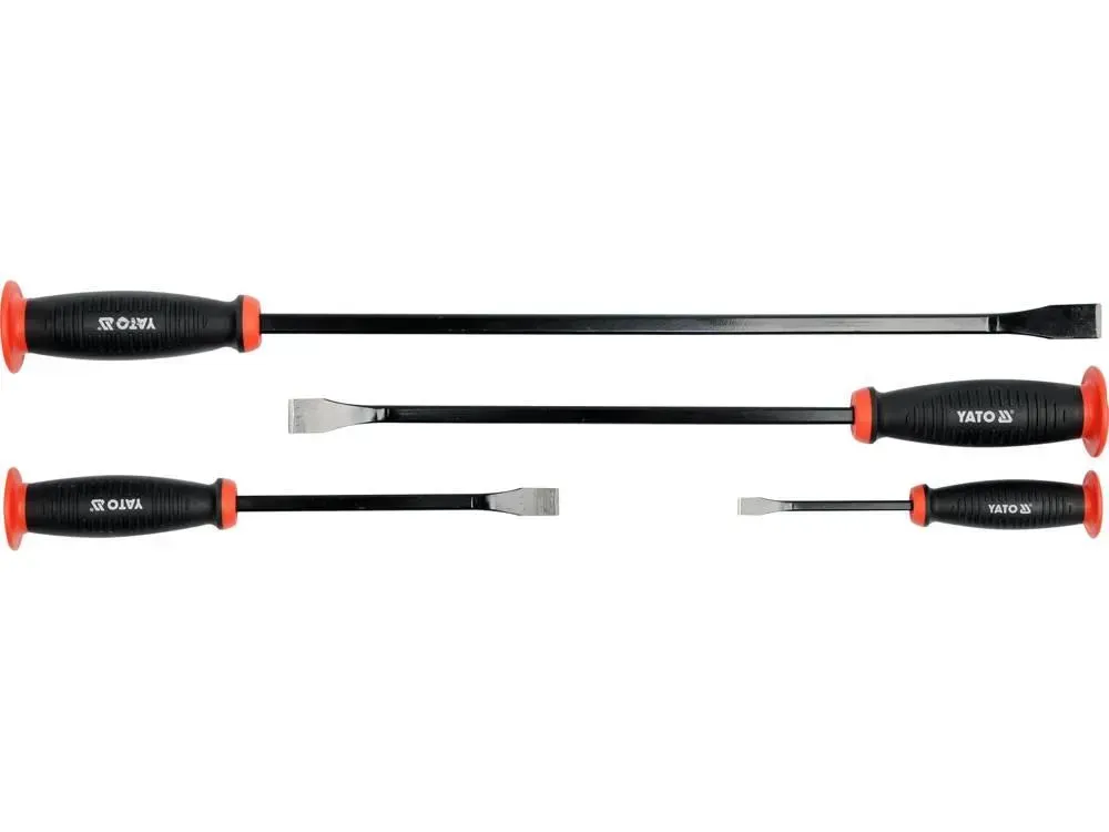 Набір з чотирьох брухтів/важелів/кованої вуглецевої сталі. Загартовані приблизно до 38 HRC, ручки захищені зручними пластиковими накладками. Різноманітність розмірів дозволяє оптимально підібрати інструмент для діяльності, що виконується. Для використання у майстернях, СТО, гаражах.