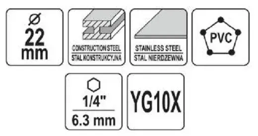 ГоловнаІнструменталкакоронки біметалСвердло корончате по металу з твердосплавними напайками 1/4″ 22*103мм YATO YT-44054