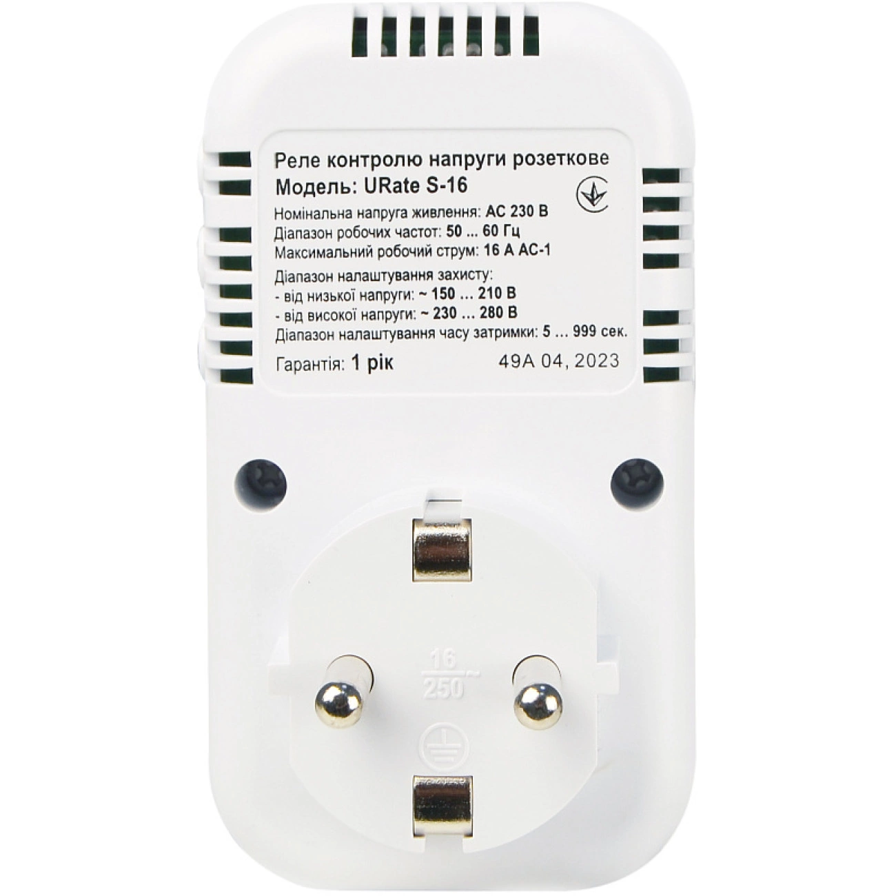 Основні характеристики Реле контролю напруги розеткове URate S-16 AC 230V 16A